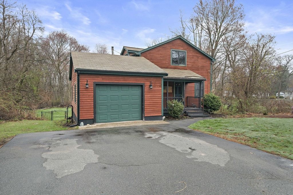 Set on a generous, nearly half-acre lot, this spacious home offers an open-concept floor plan with hardwood floors and exceptional indoor-outdoor living. The sun-drenched 27x20 family room features soaring cathedral ceilings and a cozy wood-burning stove, creating a warm and inviting atmosphere. The lower-level recreation room adds valuable living space with a wood pellet stove and direct walkout access to the expansive, private, fenced-in backyard, perfect for entertaining, pets, or relaxing in a serene setting. Step outside to an oversized sun deck overlooking lush grounds that abut the Holbrook Town Forest and Braintree conservation land....read more