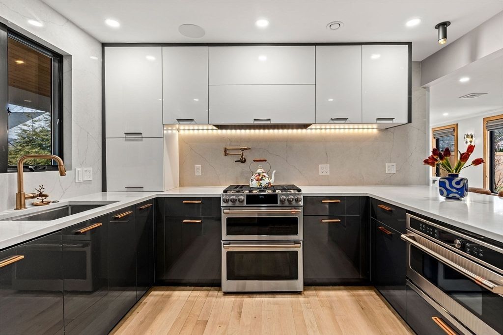 This exceptional single-family home in Newton has been completely gut renovated with uncompromising craftsmanship and elevated design??offering the perfect alternative to condo or townhome living with no shared walls and complete privacy. Thoughtfully curated high-end finishes blend modern style with everyday comfort. Highlights include a striking white oak staircase with integrated accent lighting, a sleek custom kitchen and bar, Andersen casement windows, and fully built-out custom cabinet closets throughout. The home features three bedrooms, a versatile den or home office, and three spa-inspired bathrooms finished with elegant Italian...read more