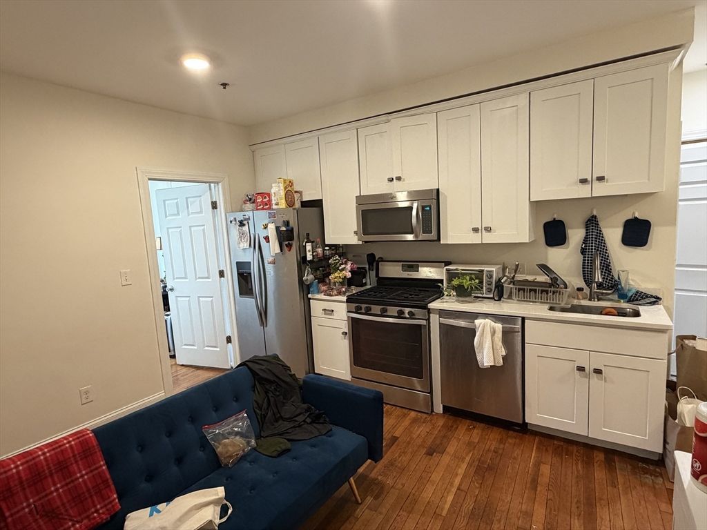 Beautiful 3 bed 2 bath in excellent location. Bright sunny apartment with natural light. Hardwood floors through out the unit. Kitchen features are stainless steel appliances, garbage disposal, dishwasher. Laundry in common area. Wall mounted TV included. Green line train stop in front of building. On the same street are restaurants, bars, convenience stores, grocery store, package store, and much more. The Longwood area medical center hospitals 2 blocks down.